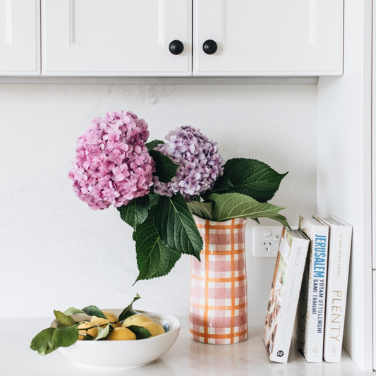 NOUVEAU – Vase large à rayures bordeaux et roses